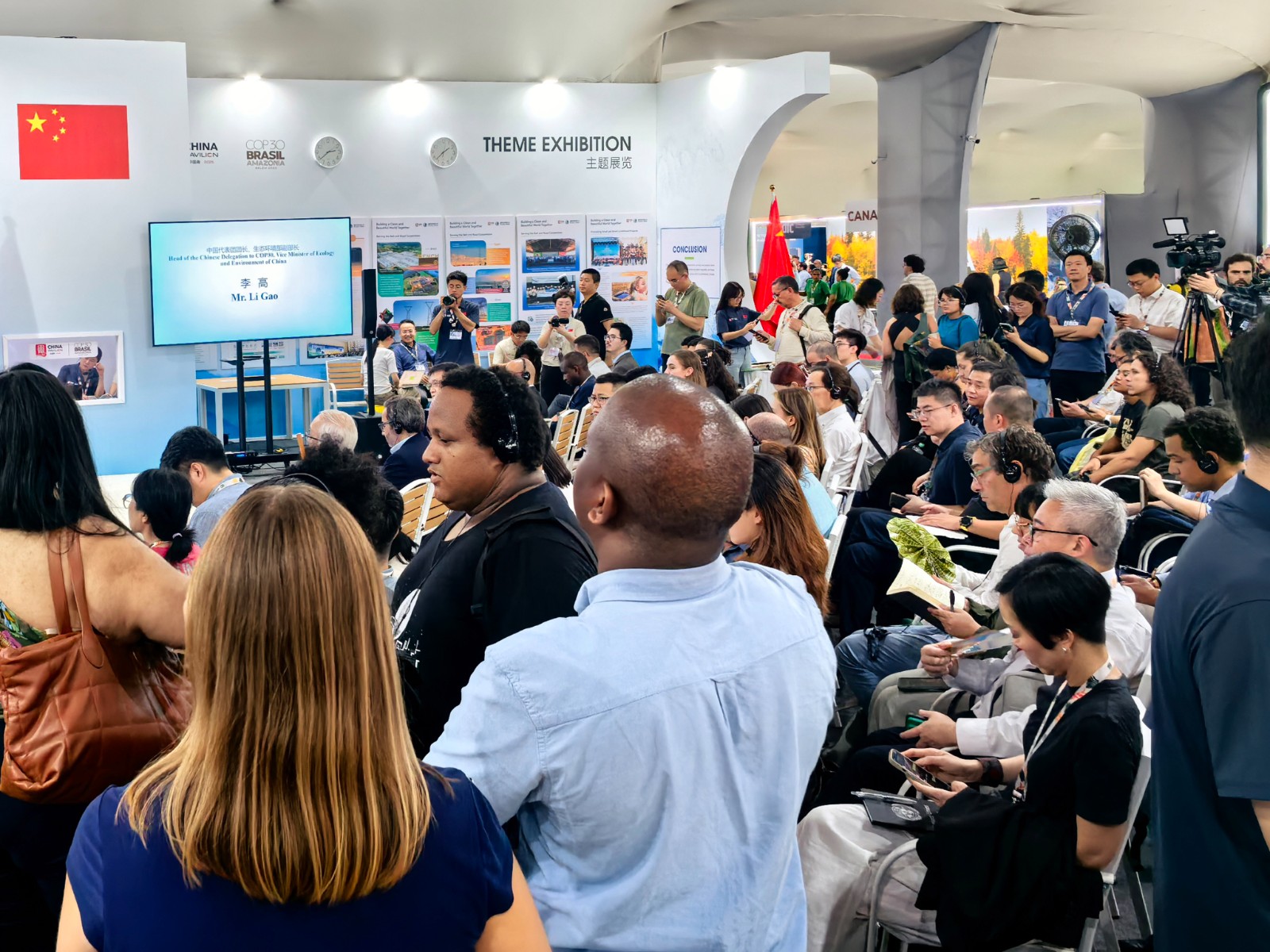 COP30“中國角”作為展示中國參與全球環境治理成果的重要平臺,自啟幕以來已成功舉辦多場高質量邊會。其中,“推動綠色創新合作 共建綠色絲綢之路”邊會由生態環境部指導,“一帶一路”綠色發展國際聯盟等單位聯合主辦。中國代表團團長、生態環境部副部長李高,“一帶一路”綠色發展國際聯盟理事長、國合會委員、生態環境部原副部長趙英民,聯合國副秘書長豪爾赫·莫雷拉·達席爾瓦,《聯合國氣候變化框架公約》秘書處執行秘書西蒙·斯蒂爾,馬爾代夫旅游與環境部氣候司司長阿姆賈德·阿卜杜拉等嘉賓出席會議。集團黨委書記、副總裁何淼作主題報告。